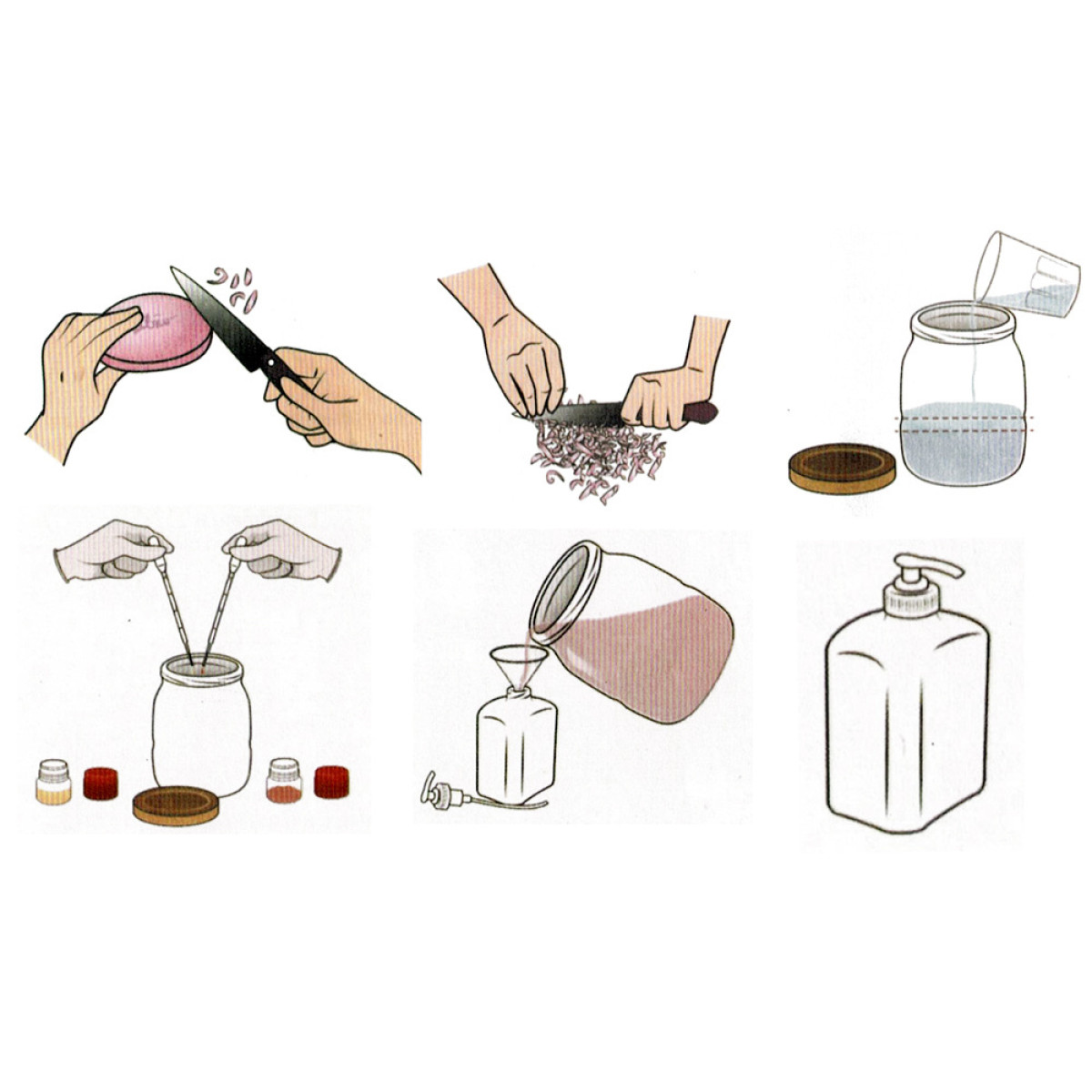 Komplektā ir angļu valodas grāmatiņa ar detalizētu aprakstu par sastāvdaļām, ziepju izgatavošanas procesu, krāsu sajaukšanu un interesantiem faktiem, kā arī dažādām idejām ziepju radīšanai.