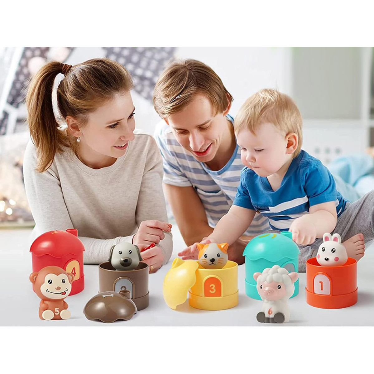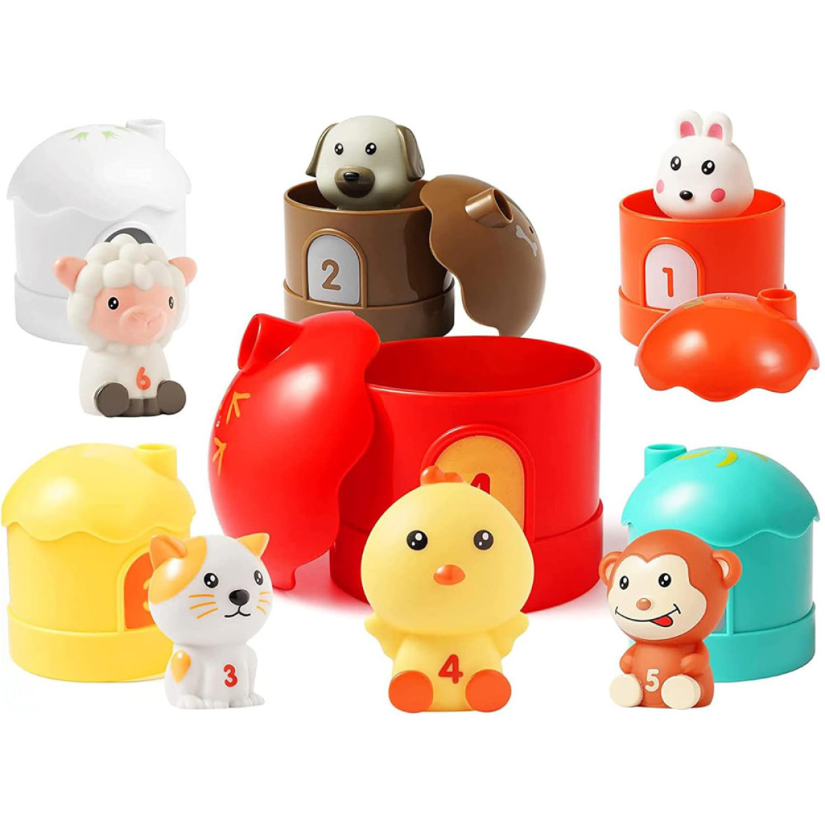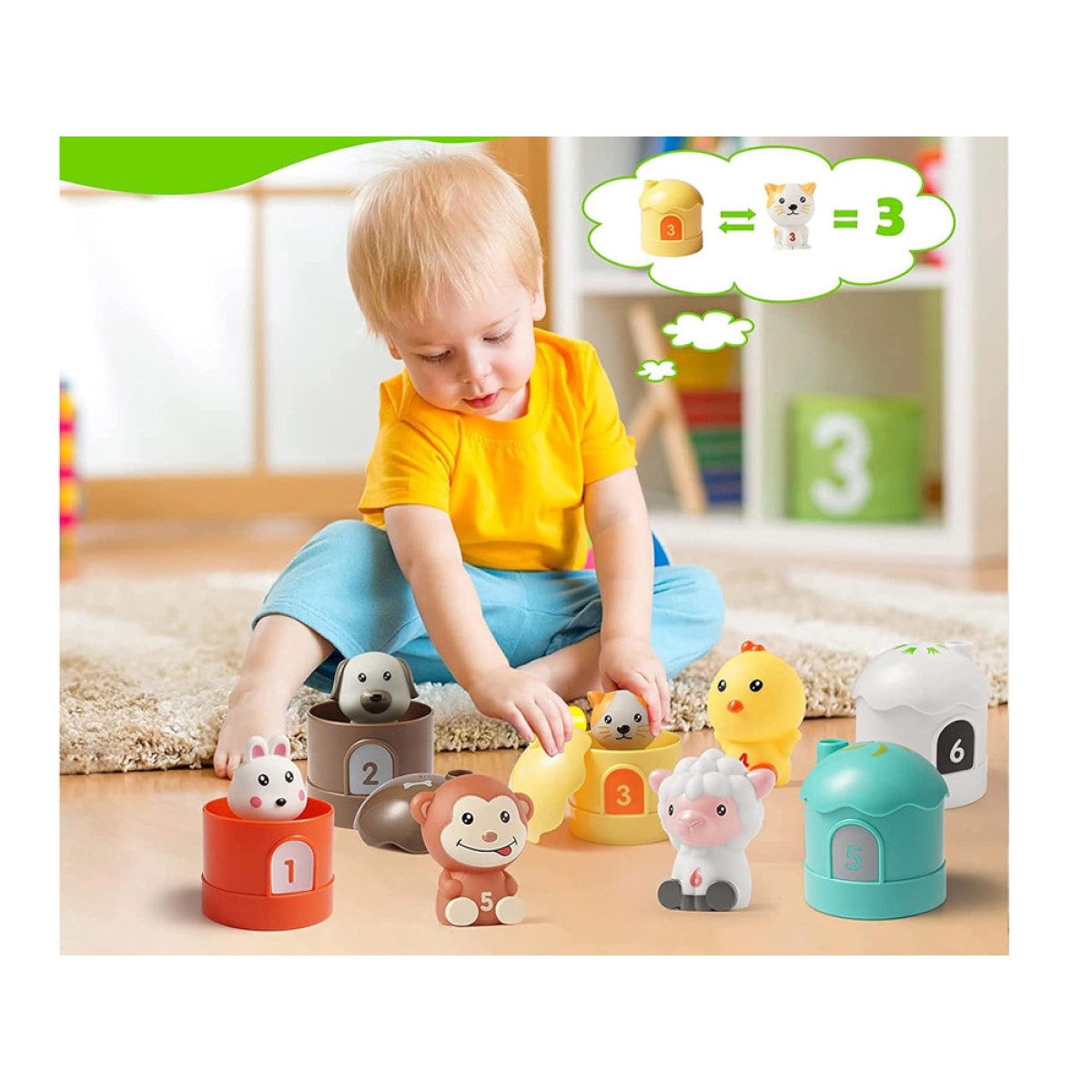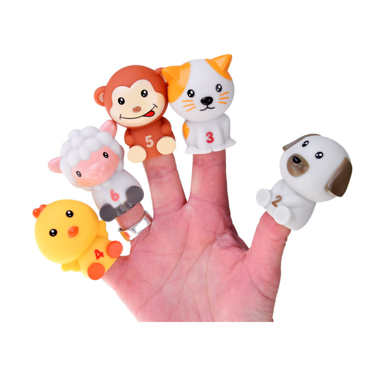 Gumijas dzīvnieciņu komplekts ir ideāls rotaļām teātrī, skaitīšanas apguvei, kā arī jautrām peldēm vannā. Dzīvnieciņi dzīvo katrs savā mājiņā, kuras ir apaļas ar atveramu jumtu, un uz katras mājiņas ir cipars. Katrai gumijas figūriņai ir cipars uz vēdera un caurums apakšā, kas ļauj to izmantot teātra spēlēm.