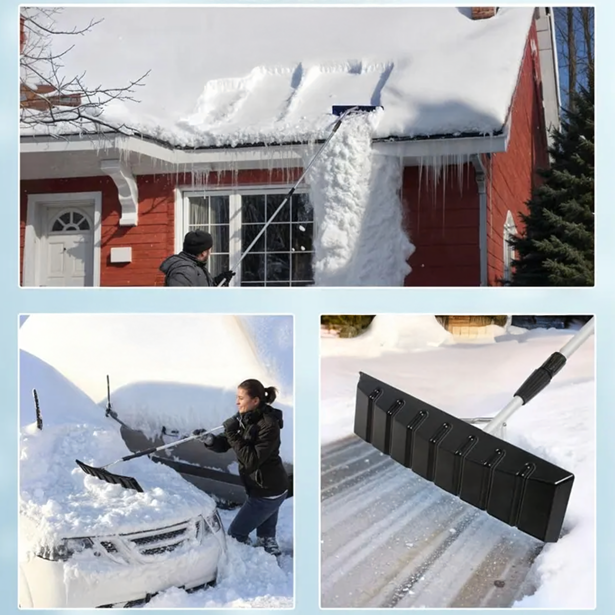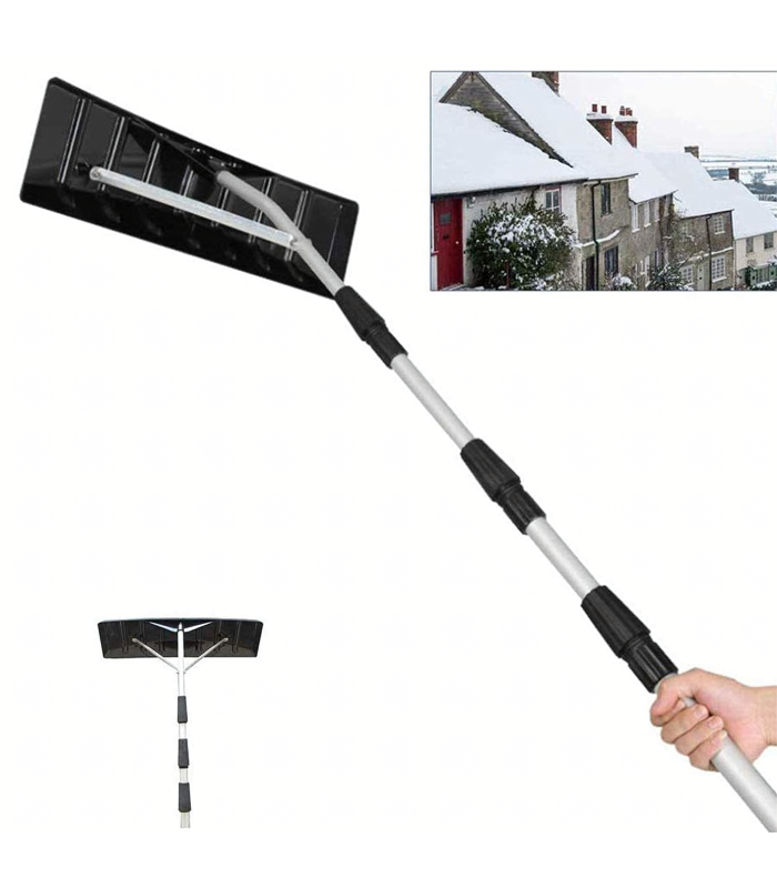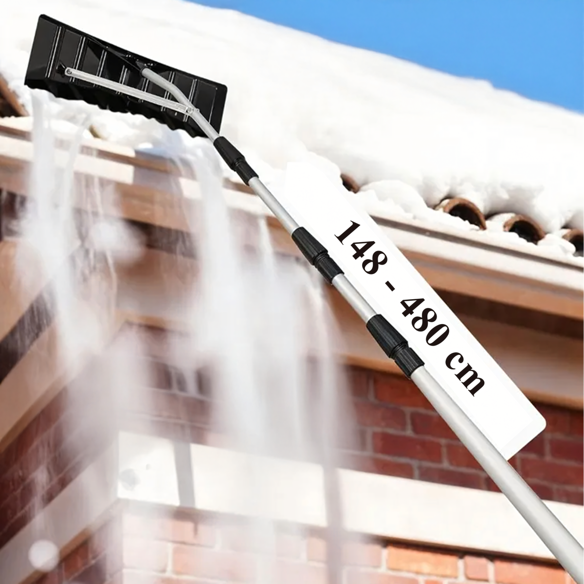 Teleskopiska sniega lāpsta jumta tīrīšanai 480 cm ir neaizvietojams ziemas rīks sniega noņemšanai no jumtiem, autobusiem, kravas automašīnām un saules paneļiem. Pateicoties teleskopiskajam alumīnija kātam ar garumu līdz 480 cm, jūs viegli varēsiet nokļūt grūti sasniedzamās vietās. Vieglā, bet izturīgā konstrukcija ļauj efektīvi un droši tīrīt sniegu, neuzkāpjot uz jumta.