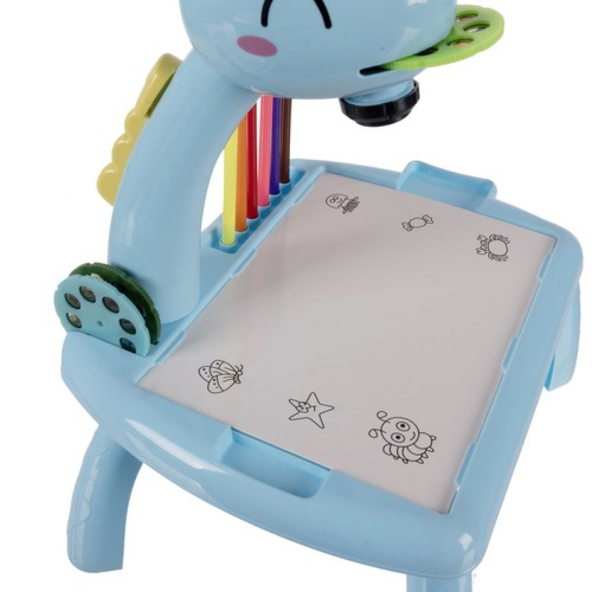 - Izturīgs galds - Projektors ar piederumiem būs lieliska dāvana ikvienam bērnam, kuram patīk zīmēt. Stabilitātes saglabāšanai galdam ir kājas, kas zīmējumus padarīs mērķtiecīgus. Starp citu, uz projektora ir uzlikta atkārtoti lietojama karte, lai varētu zīmēt ar marķieriem, ko atradīsi komplektā.