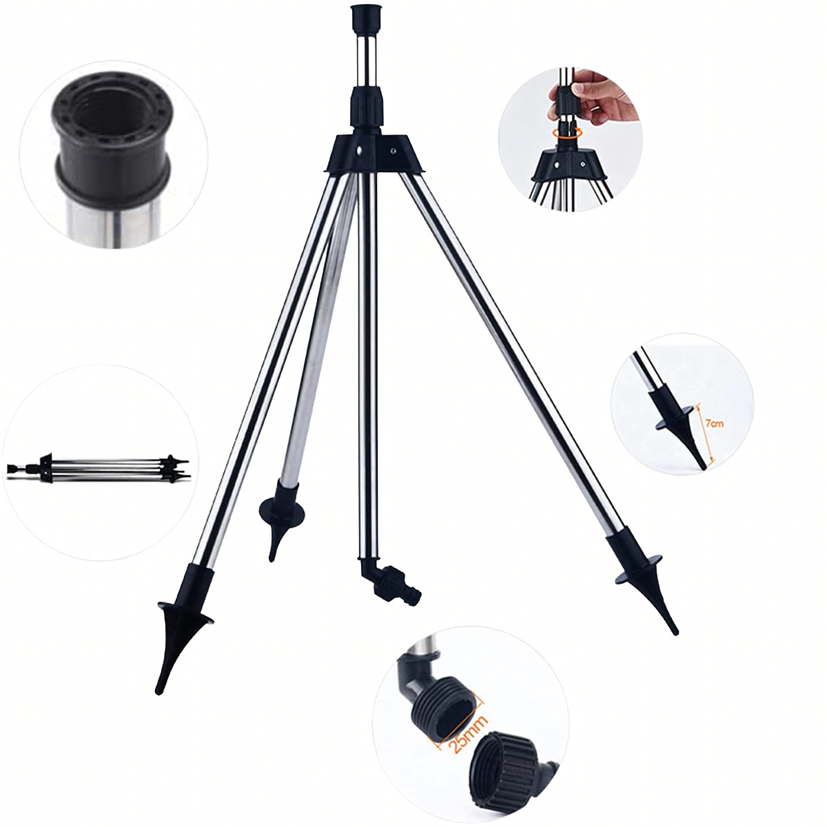 Praktisks un ērti lietojams rotējošs smidzinātājs uz statīva, kas paredzēts dārza laistīšanai un zāliena apūdeņošanai. Regulējamā konstrukcija palīdz pielāgot ūdens izsmidzināšanu dažādām vajadzībām, bet sprausla nodrošina vienmērīgu laistīšanu līdz pat 24 m attālumā.