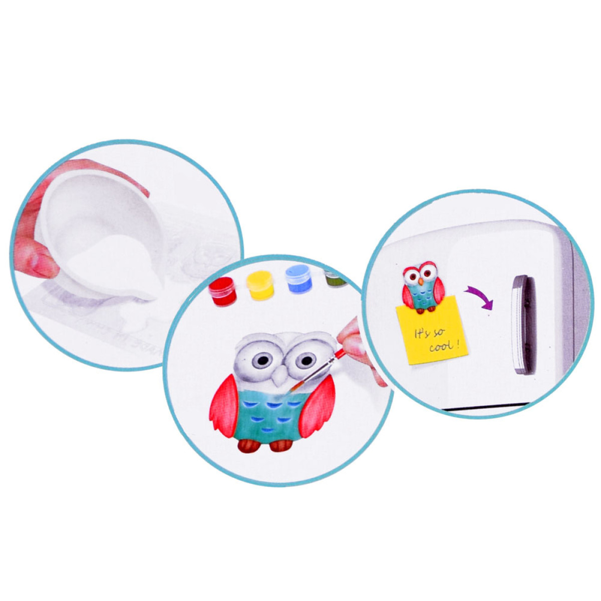 Bērns pats sagatavo formu un pēc tam to izkrāso pēc saviem ieskatiem. Komplektā ir iespējams izveidot 6 dažādus magnētus.